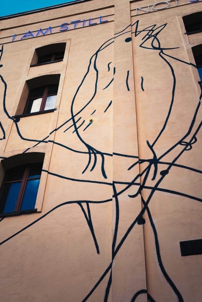 Die Installation verhandelt menschliche Verletzlichkeit, emotionale Reaktionen auf Krisen und die Ambivalenz zwischen privater Wahrnehmung und öffentlichem Raum. Post Traumatic Birds ergänzt diese Reflexion: Zwei Vögel, gezeichnet zwischen Ausdruck und Auflösung, erscheinen als fragile Metaphern für Verstörung, Erinnerung und Überleben.