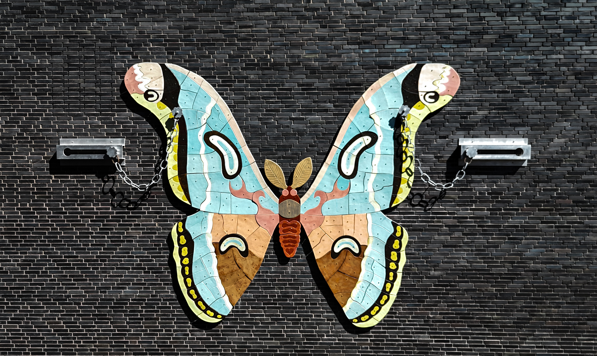 Als erste Arbeit im öffentlichen Raum öffnet Public Butterfly Margarettes Praxis buchstäblich nach außen: Das Werk steht im Dialog mit der Architektur des Union-Areals, mit Witterung, Licht und Bewegung. Es lädt dazu ein, über Schutz und Offenheit, Schönheit und Gefahr, Kontrolle und Freiheit nachzudenken, Themen, die sich durch das gesamte Œuvre der Künstlerin ziehen.